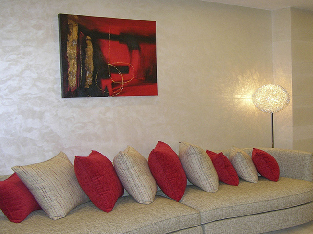 天鹅绒艺术漆拥有细腻丝绸般的触感,闪烁珍珠般的金属光泽,搭配恰到好处的光源将呈现独特的光影效果。天鹅绒艺术涂料采用搓揉、打磨纯手工的施工方法,每平米的肌理、光泽呈现都不重复,高光与阴影相得益彰,肌理自然圆润。